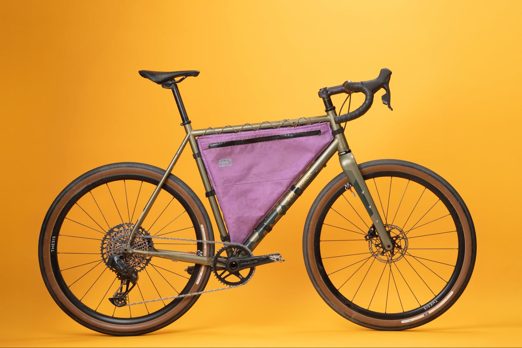 Top tube bag - Blue Topo print w/ purple webbing & purple zipper