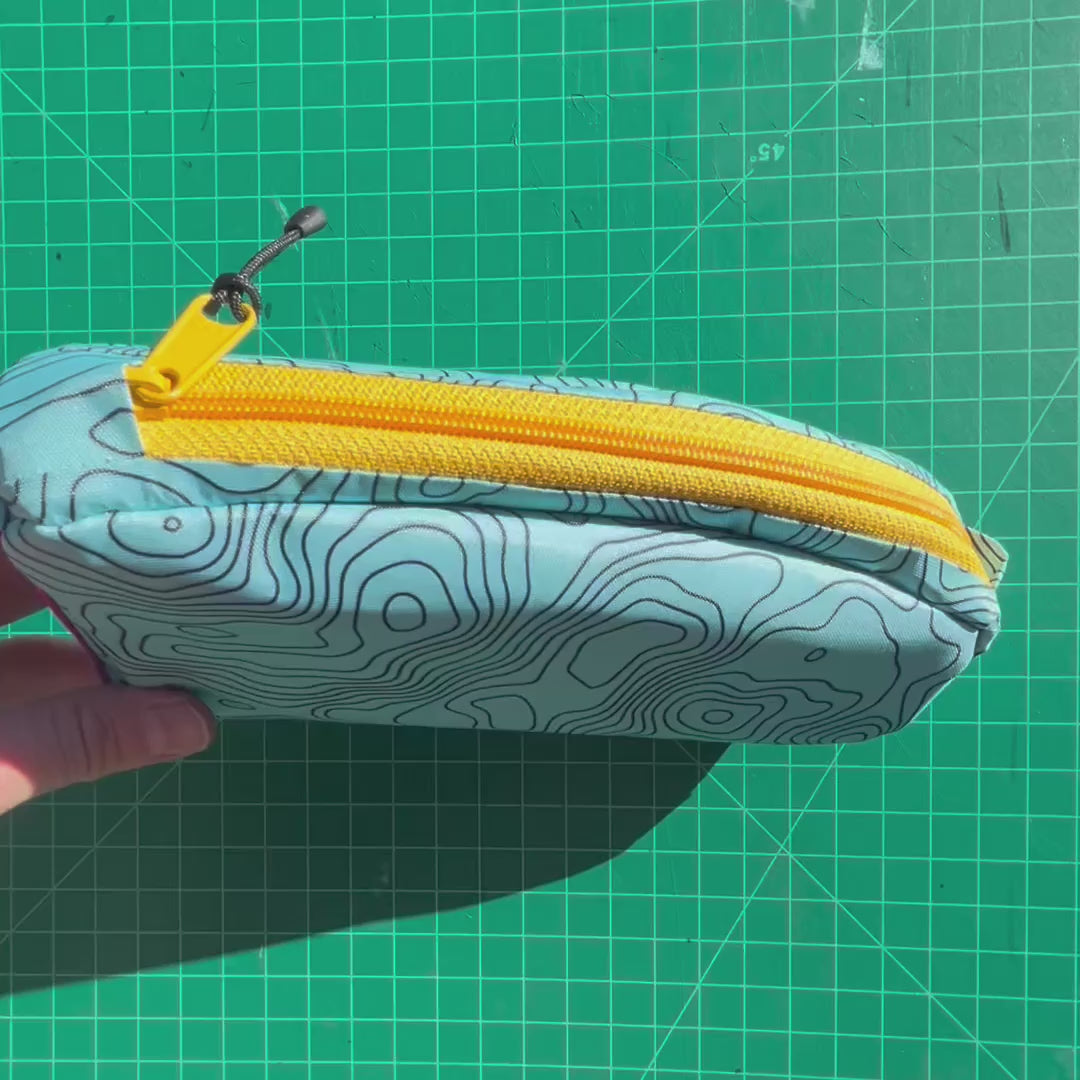 Top tube bag - Blue Topo print w/ pink webbing & yellow zipper