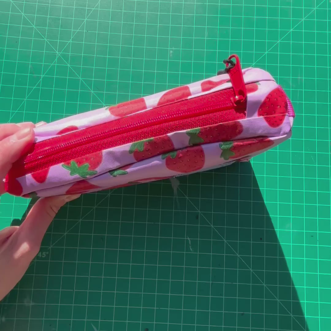 Top tube bag - Strawberry print w/ red zipper & pink webbing