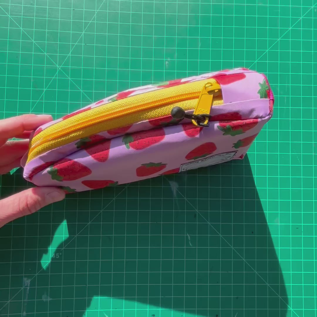 Top tube bag - Strawberry print w/ yellow zipper & pink webbing