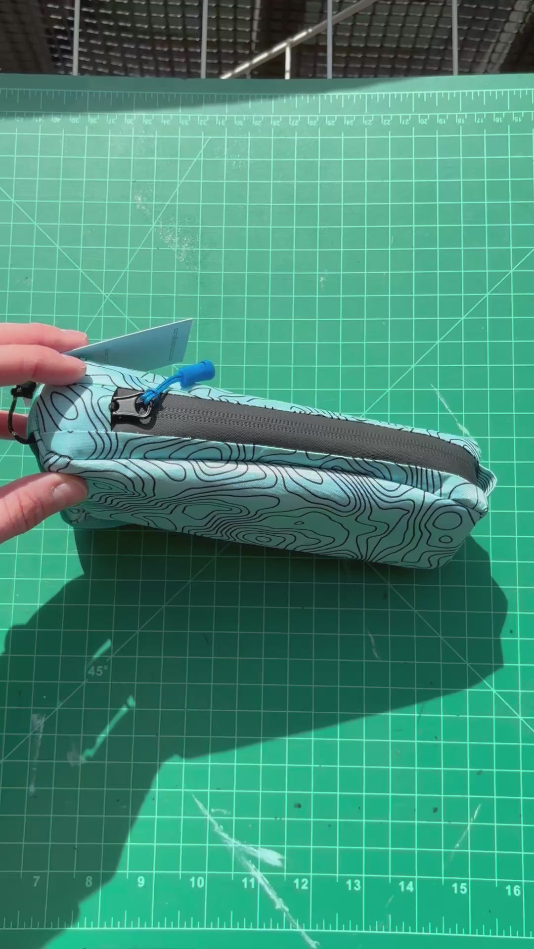 Top tube bag - Topo print w/ black zipper & blue webbing